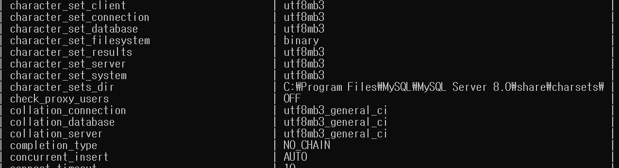- show variables like 'c%'; 입력