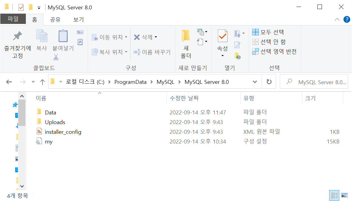 - my.ini 파일을 메모장으로 열기