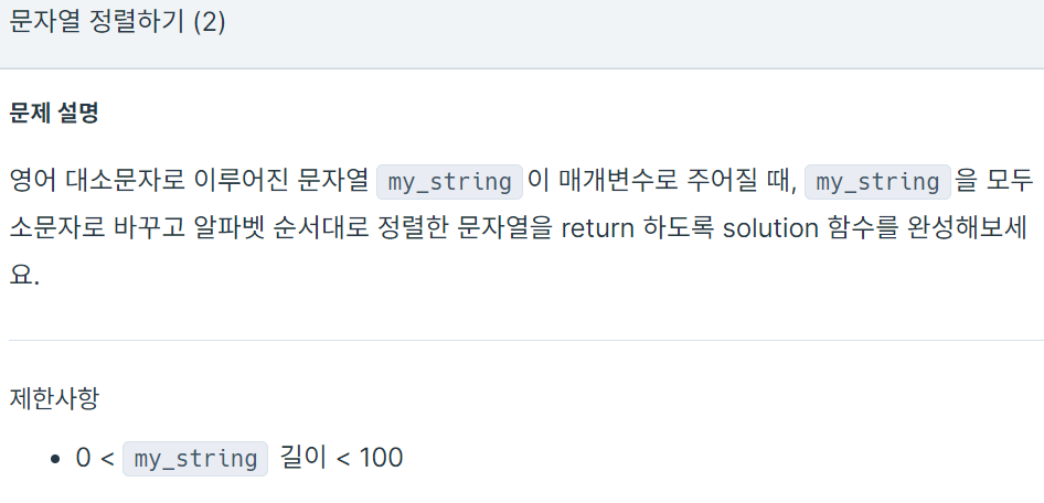영어 대소문자로 이루어진 문자열 my_string이 매개변수로 주어질 때, my_string을 모두 소문자로 바꾸고 알파벳 순서대로 정렬한 문자열을 return 하도록 solution 함수를 완성해보세요.