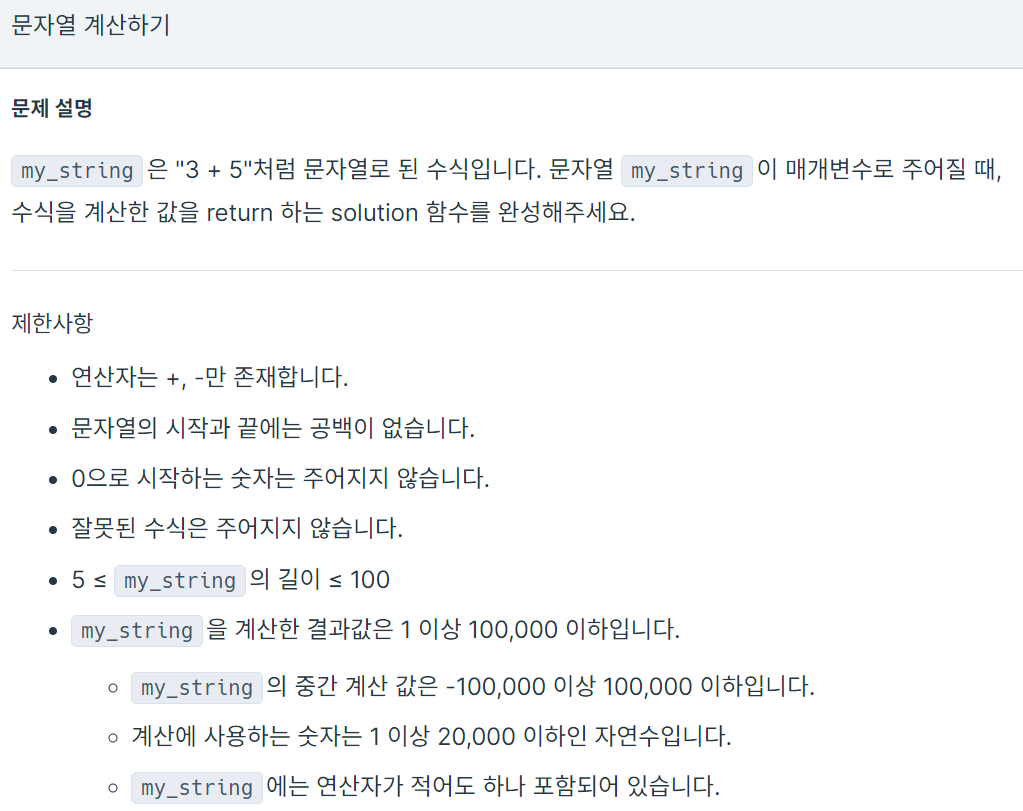 - my_string을 계산한 결과값은 1 이상 100,000 이하입니다.