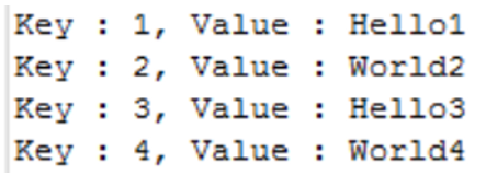 System.out.println("Key : " + entry.getKey() + ", Value : " + entry.getValue());