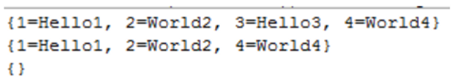 - clear()메서드를 사용하면 HashMap의 모든 키 값을 삭제