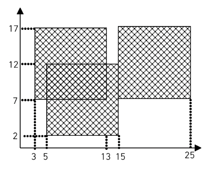 예를 들어 흰색 도화지 위에 세 장의 검은색 색종이를 그림과 같은 모양으로 붙였다면 검은색 영역의 넓이는 260이 된다.