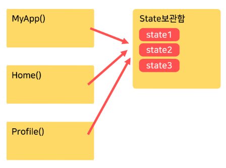 - 전송 없이 모든 위젯이 state를 직접 가져다 쓸 수 있게 만들어주는 패키지