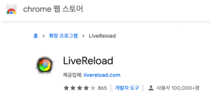 ② 구글 크롬 웹 브라우저에서 LiveReload 프로그램 설치