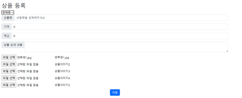 <!-- 저장된 이미지 정보가 있다면 파일의 이름을 보여주고, 없다면 상품 이미지 + 번호를 보여준다. -->