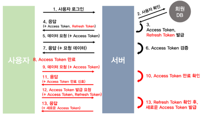 - Access Token์ด ๋ง๋ฃ๋ ๋๋ง๋ค ์๋กญ๊ฒ ๋ฐ๊ธํ๋ ๊ณผ์ ์์ ์๋ฒ์ ์์ ๋ญ๋น๊ฐ ์๊น