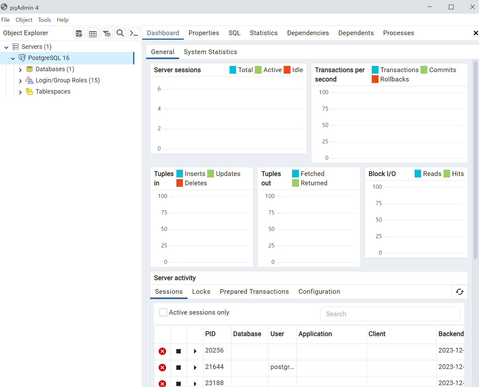 1. pgAdmin4 실행 2. 비밀번호를 입력후 접속 만약 접속이 안되면 server 클릭 -> PostgreSQL 12 우클릭 -> Connect Server 누른후 설치할 때 설정한 비밀번호 입력 3 . 접속을 하시면 Sever Dashboard와 PostgreSQL 구조