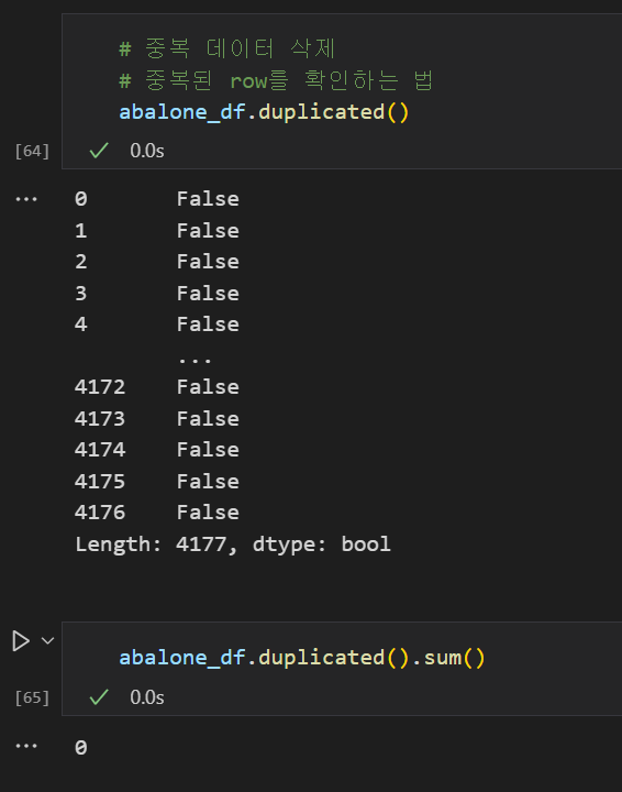 중복 데이터 삭제 - new_abalone_df.drop_duplicates()
