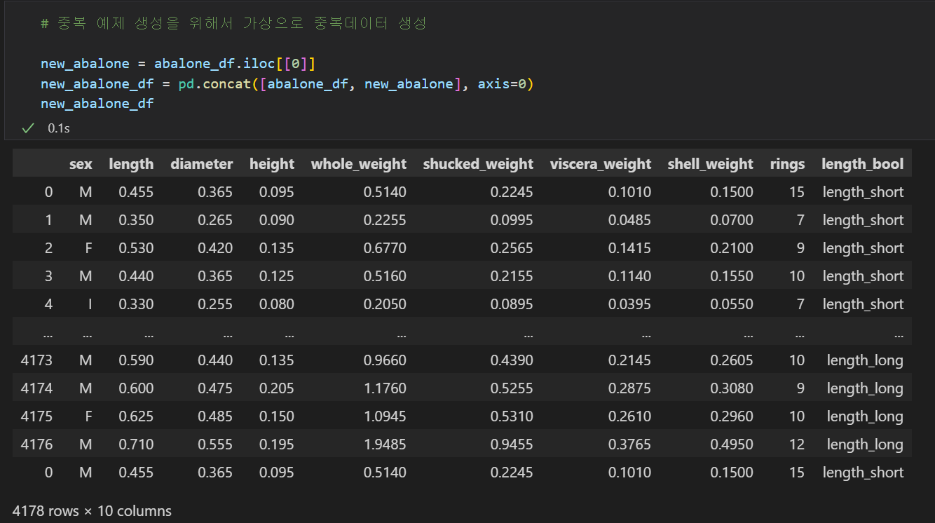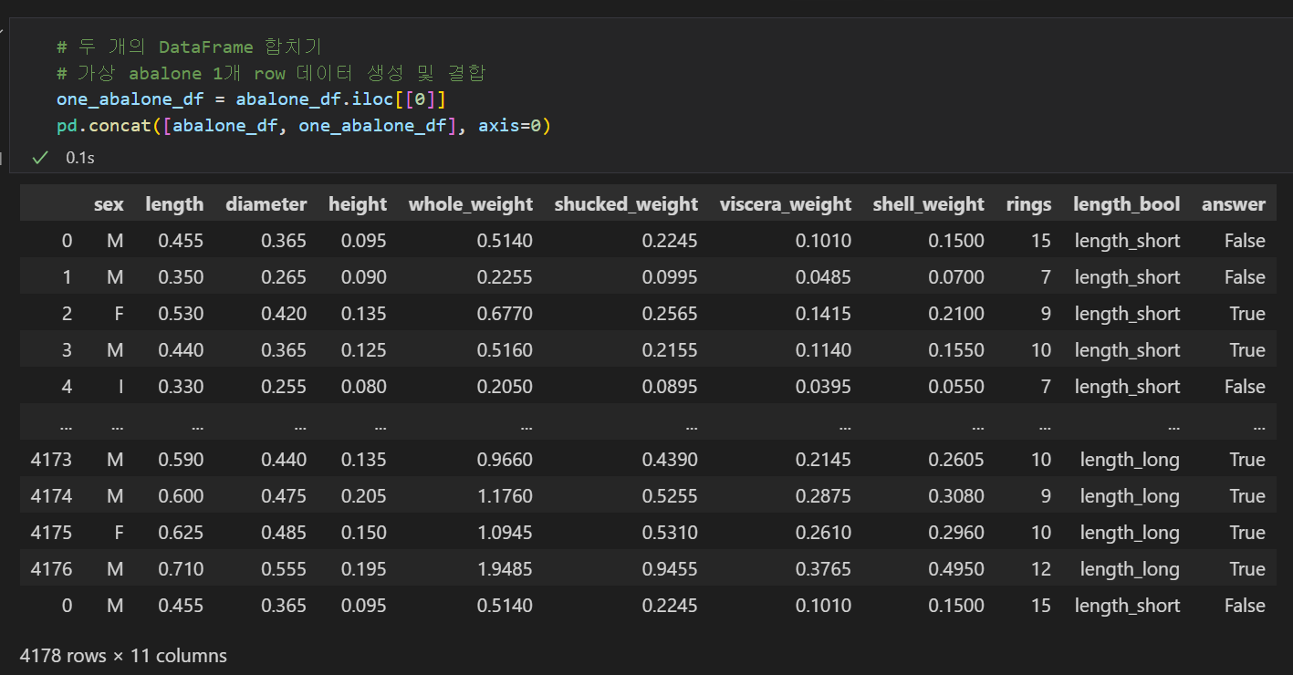 - abalone_df과 new_abalone을 행 형태로 합칠 것이다.