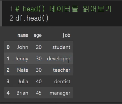 - 외부 데이터를 입력 받아 Pandas 자료구조로 저장 및 출력