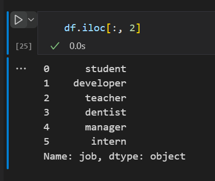 - 인덱스를 [0, 1, 2, 3, 4, 5]에서 [1, 2, 3, 4, 5, 6]으로 변경 후 2열의 있는 값 가져오기