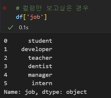 → 문자열, 즉 데이터프레임에 있는 형태 그대로 가져옴