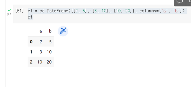 df = pd.DataFrame([[2, 5], [3, 10], [10, 20]], columns=['a', 'b'])