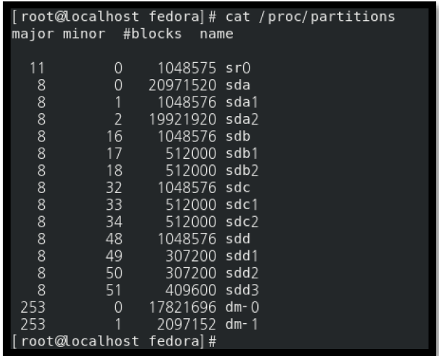 - /proc/partitions : 현재 시스템의 파티션 정보를 저장