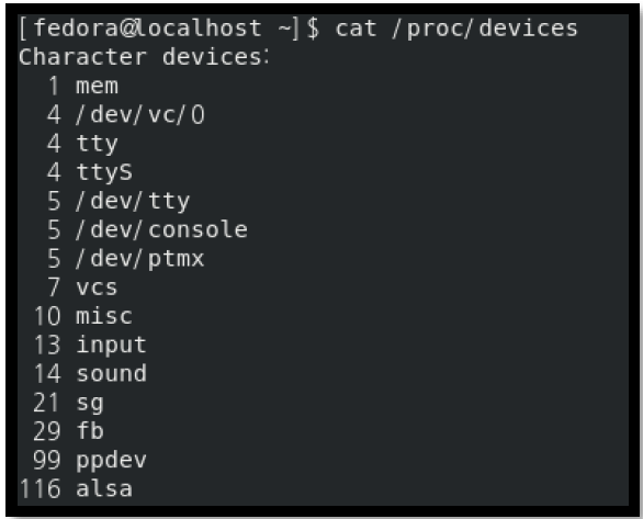 - /proc/devices : 현재 시스템이 사용하는 디바이스 정보를 저장