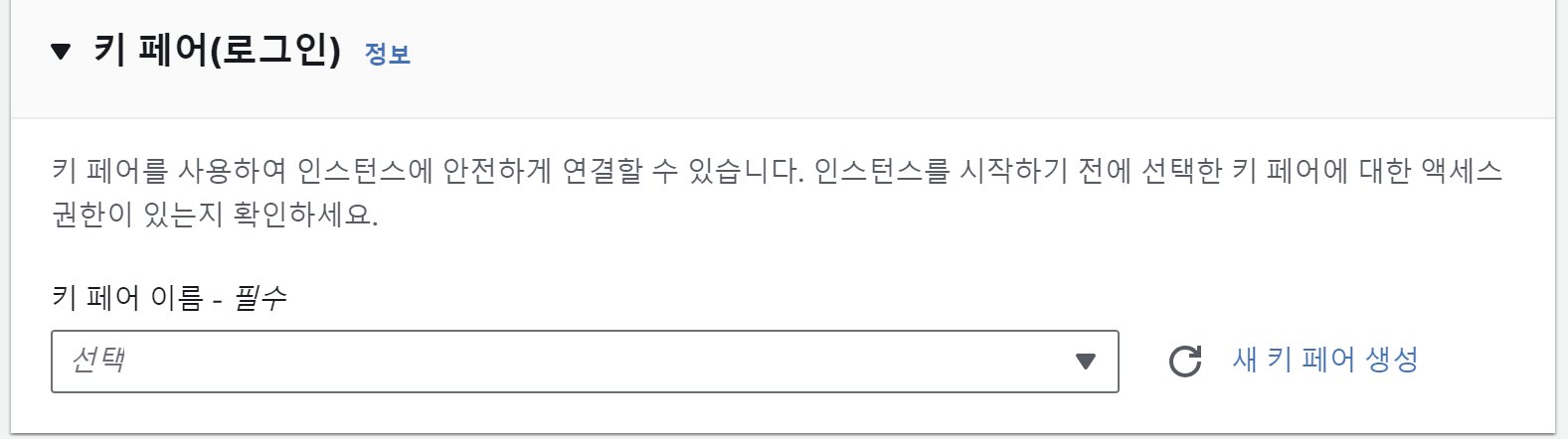 - 이름 작성하고, 키페어 유형 확인.하단에 키 페어 생성 클릭