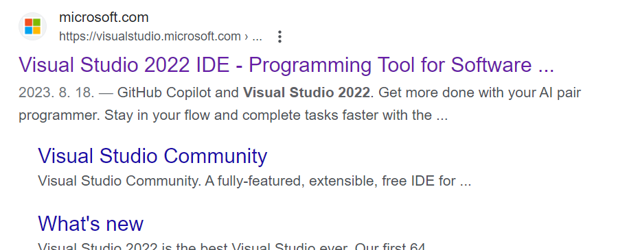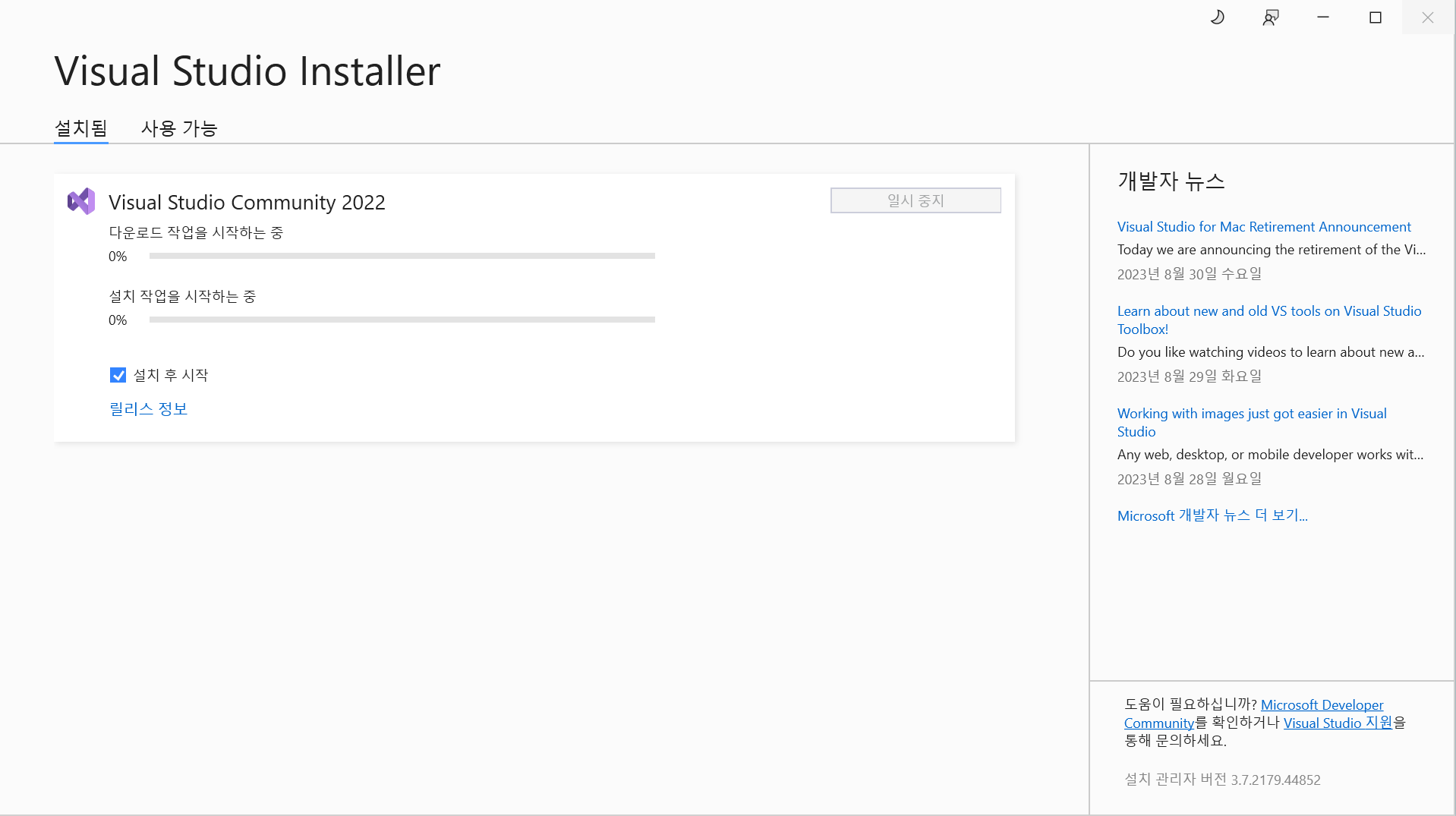 1. visual studio 2022 검색 2. Community 2022 클릭 3. Setup이 설치됨 4. 사용할 항목 선택 후 설치 공유하기 게시글 관리 Jin's Dev Story 저작자표시 비영리 변경금지 (새창열림)