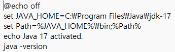 - cmd에서 생성한 bat 파일 이름을 입력하면 자바 버전 전환 가능