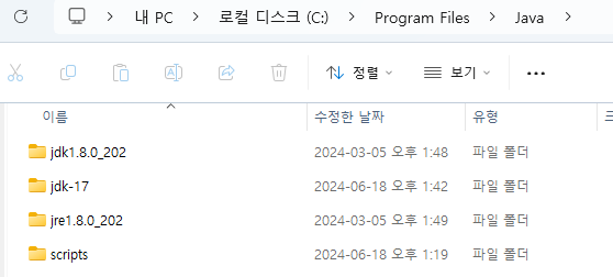 - 나는 C:\Program Files\Java 하위에 생성했다.