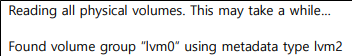 - vgscan : VG에 해당하는 모든 디스크를 스캔하고, LVM 캐시 파일을 재작성