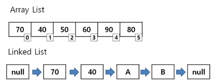 - ArrayList는 데이터를 찾는데 빠르지만, 삽입 및 삭제가 느림