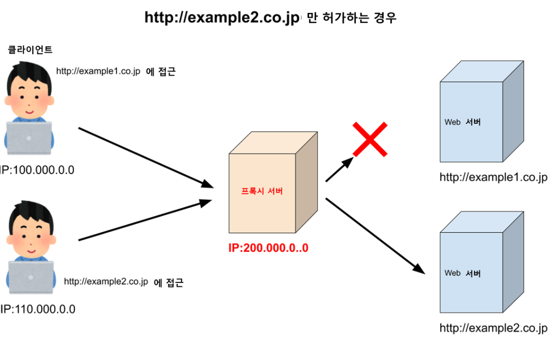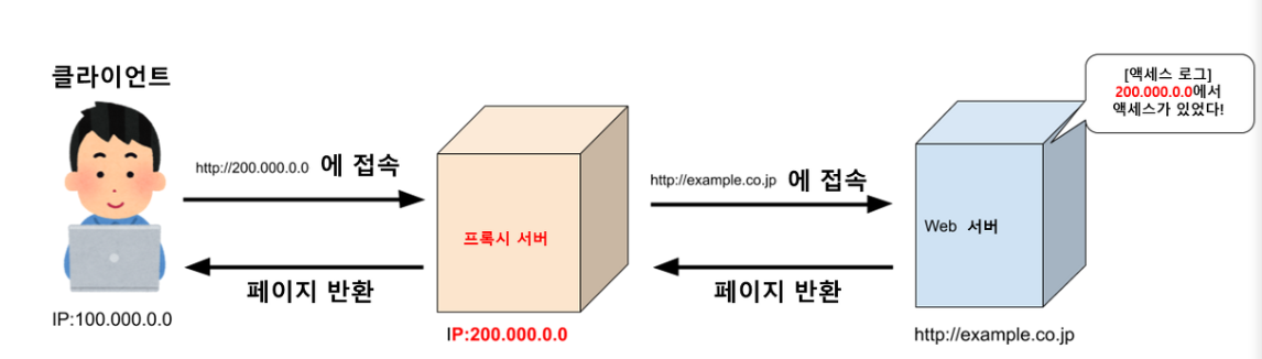 - Web 서버는 프록시 서버를 통한 액세스 로그가 남음