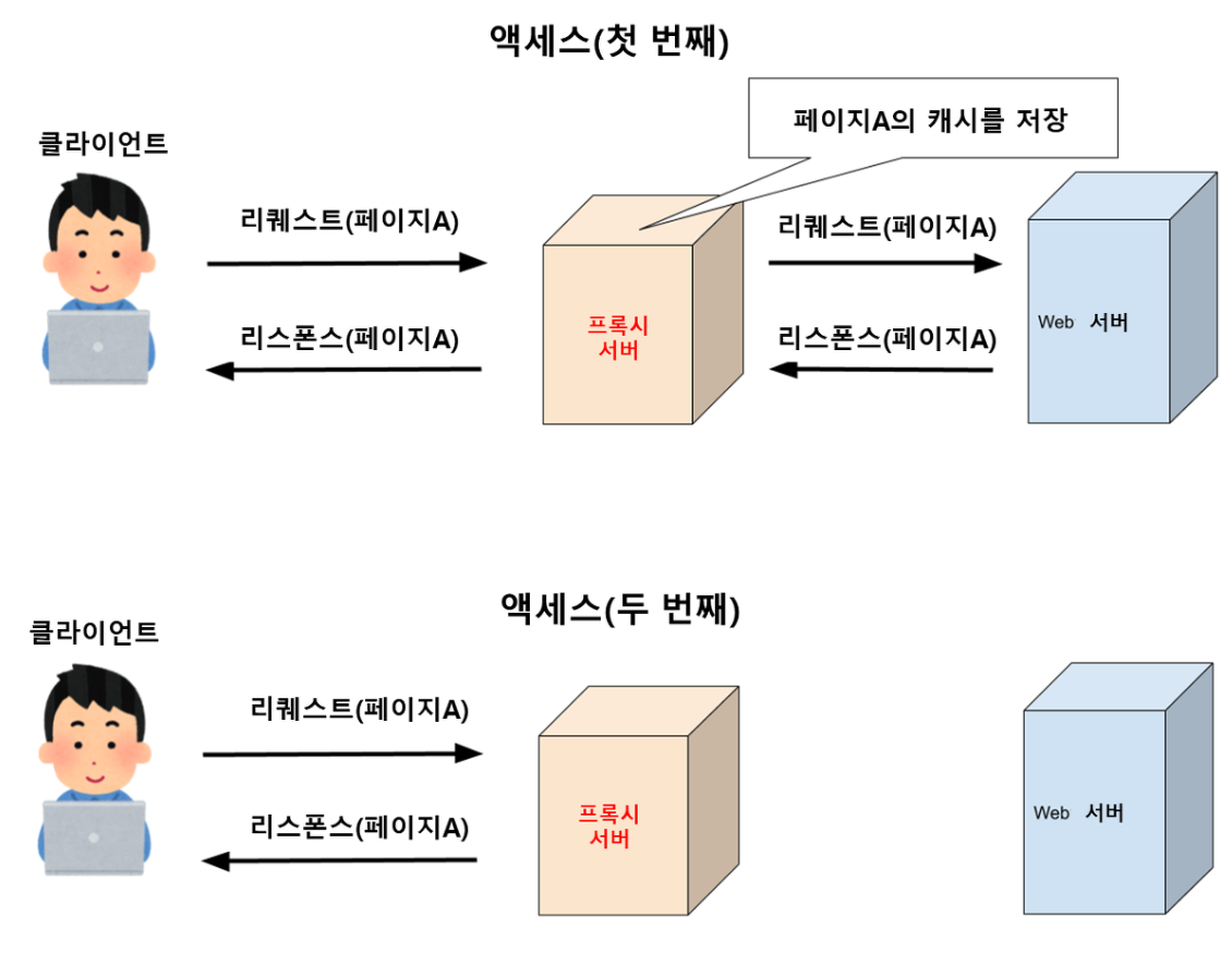 - 동일한 데이터를 얻을 때에 프록시 서버가 저장했던 내용을 돌려줌