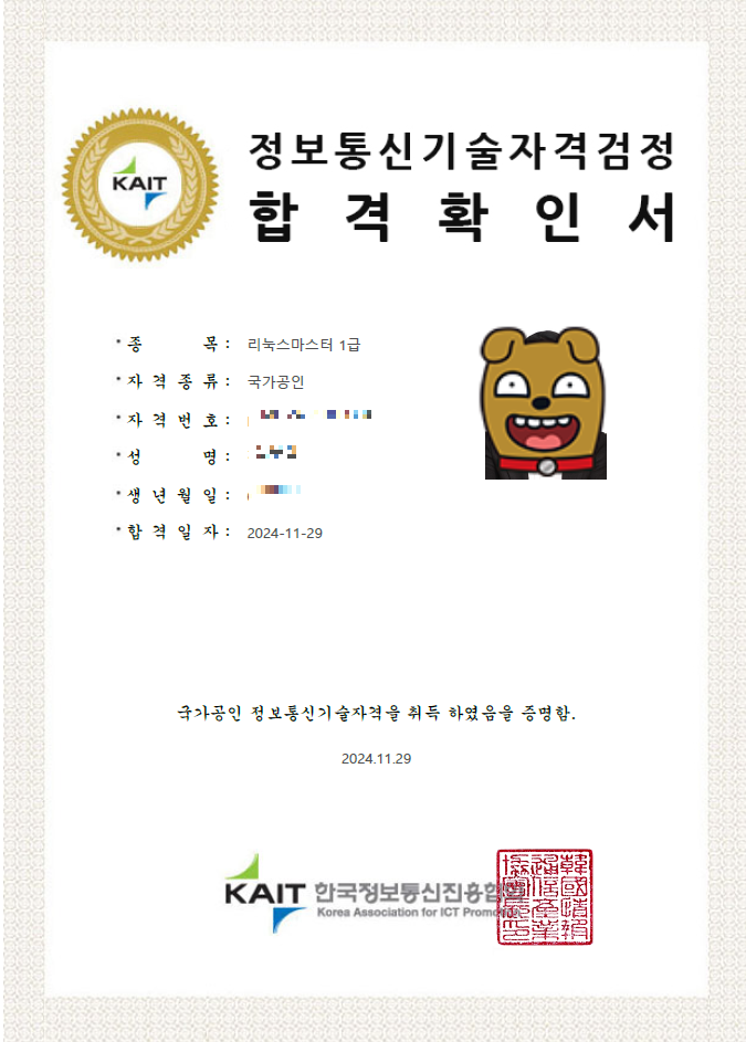 2024.11.09 리눅스마스터 1급 2024회 2차 시험을 보고 왔다.