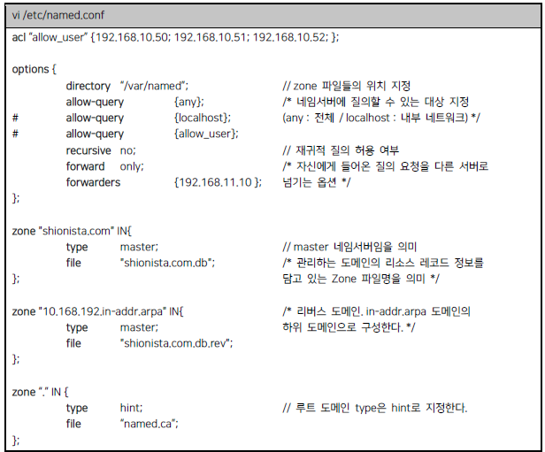 - 다. 네임 서버에 질의할 수 있는 호스트를 192.168.12.0 네트워크 대역에 속한 호스트, 192.168.3.13 호스트만 가능하도록 설정함