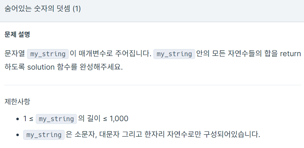 문자열 my_string이 매개변수로 주어집니다. my_string안의 모든 자연수들의 합을 return하도록 solution 함수를 완성해주세요.